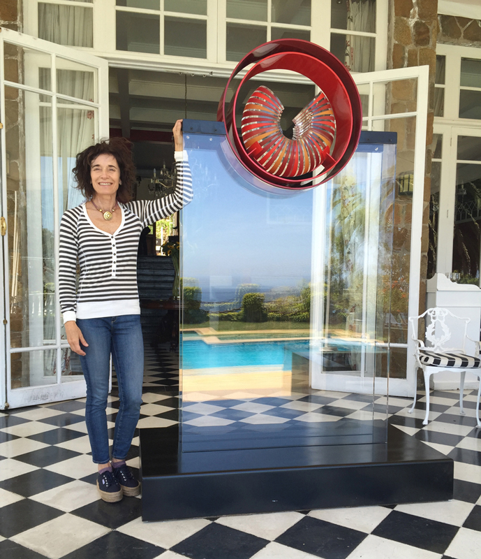 Acero pintado, acrílico transparente y resina con pigmento, medidas 2.20 x 1.10 x 0.50 mt. Año 2016